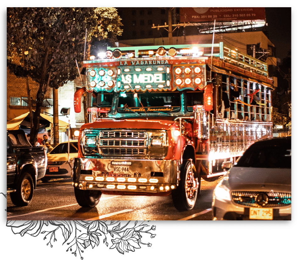 Nos trasladaremos en una auténtica chiva rumbera hasta el Restaurante Bárbaro, en Llanogrande.